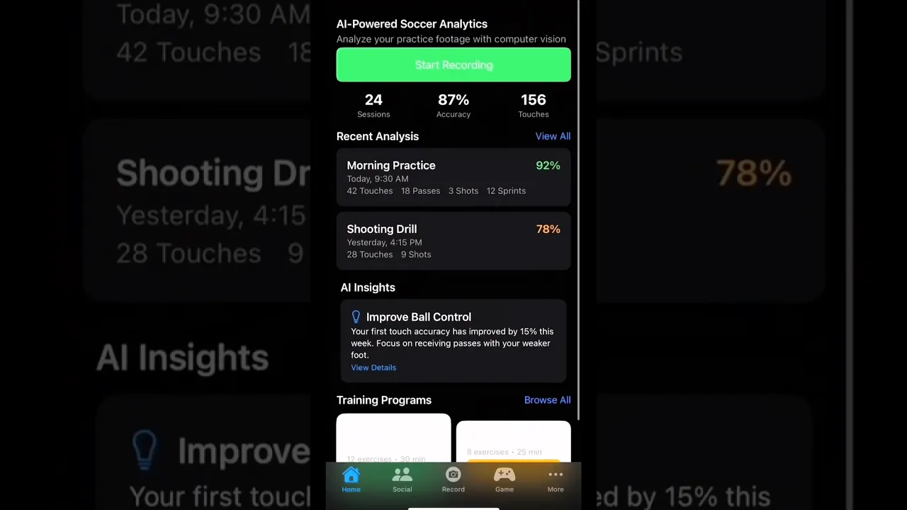 Calibrate the camera by tapping the goalposts on your screen, then choose Shooting Drill or Ladder Game. For best accuracy, set your phone on a tripod and let it run.